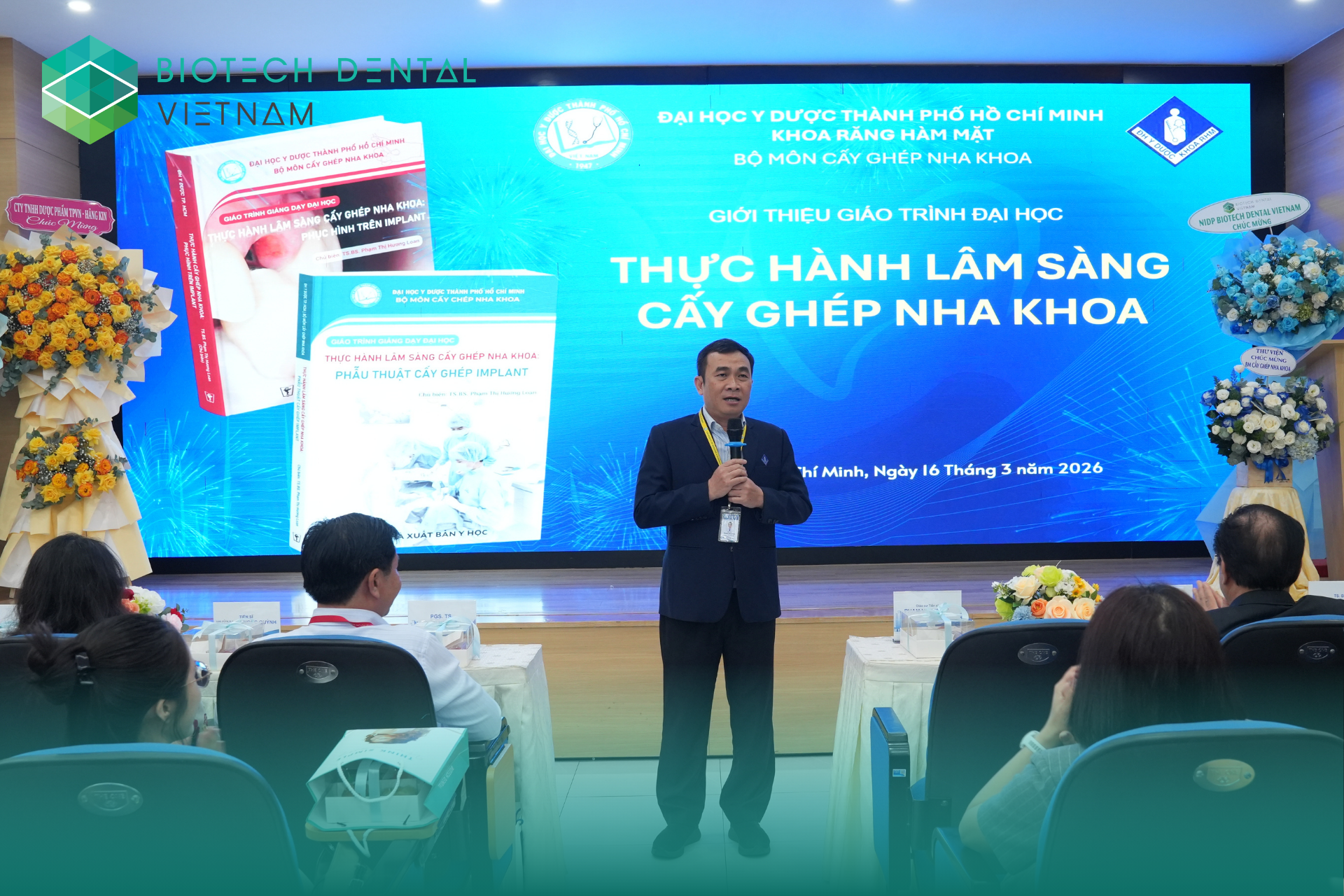 Vừa qua, vào ngày 16/03/2026, NIDP Biotech Dental Vietnam rất vinh dự khi đồng hành với vai trò Nhà tài trợ chính trong không khí sôi nổi của buổi ra mắt giáo trình đại học mới. Sự kiện đã diễn ra thành công tốt đẹp tại Đại Học Y Dược TP.HCM với sự tham gia của 50 đại biểu cùng hơn 300 sinh viên đến từ các đơn vị đào tạo Răng Hàm Mặt.
